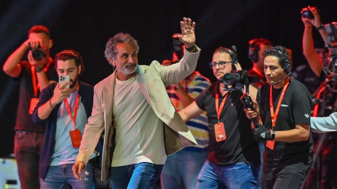 Queueing up for hours, draping Palestinian keffiyeh: How crowds turned up to watch Bassem Youssef in Sharjah