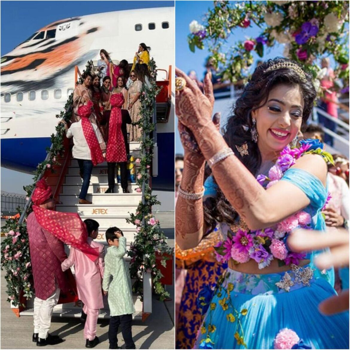 In November last year, Vidhi Popley, daughter of prominent UAE-based businessman Dilip Popley, got married aboard a modified 747 aircraft. More than 350 esteemed guests flew in from around the globe for the wedding ceremony that took place during a three-hour journey from Dubai to Oman. With games and a wedding ceremony, it was an unforgettable event.