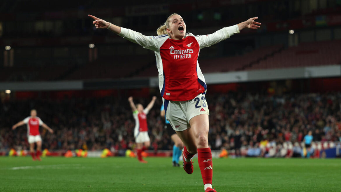 Alessia Russo scored twice for the Gunners in front of a crowd of 22,517 at the Emirates, either side of Mariona Caldentey’s header, to fire Arsenal into the last four.