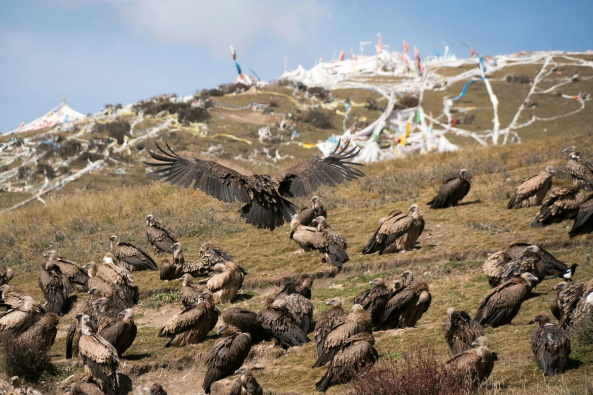 In the high-altitude regions of Tibet, traditional burial practices are quite different from what most people are accustomed to. Sky burials involve placing the deceased’s body on a mountaintop, where it is left exposed to the elements and scavenging birds, such as vultures. This practice is rooted in the belief that the body is merely a vessel and that offering it to nature and wildlife is a way of returning the deceased to the cycle of life.