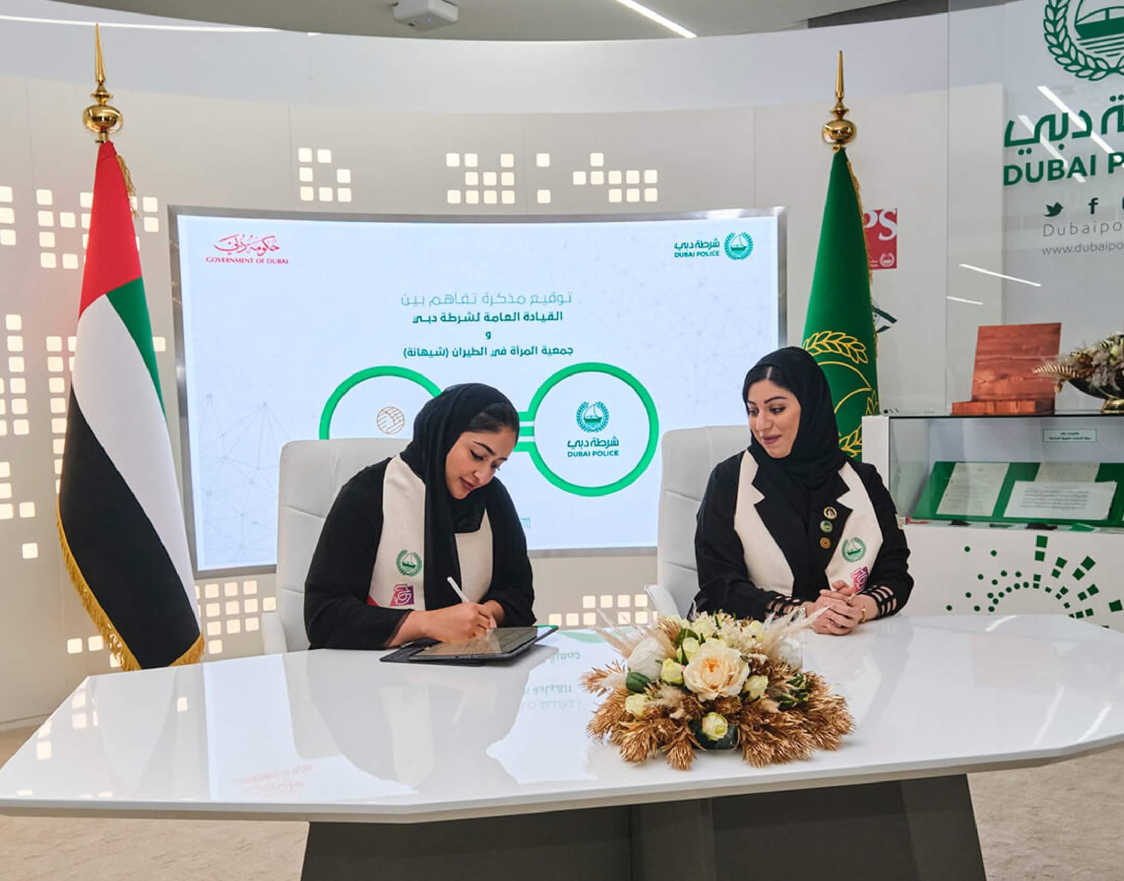 The MoU was signed by Brigadier Dr Mubarak Saeed Salem bin Nawas, Director of Lahbab Police Station, on behalf of Dubai Police, and His Excellency Ahmad Ali Belqaizi, Executive Director of the Aviation Safety and Environment Sector, representing the DCCA.