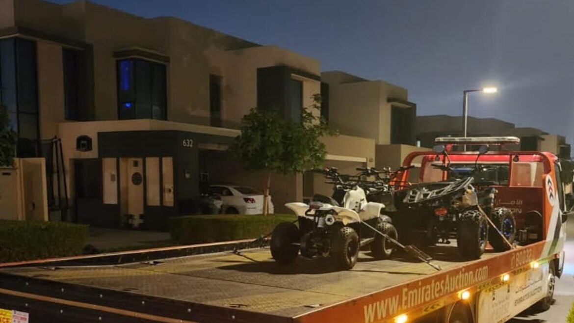 An SUV (sports utility vehicle) and a quad bike were seized by Dubai Police for doing stunts at a family camping zone in Al Ruwayyah.