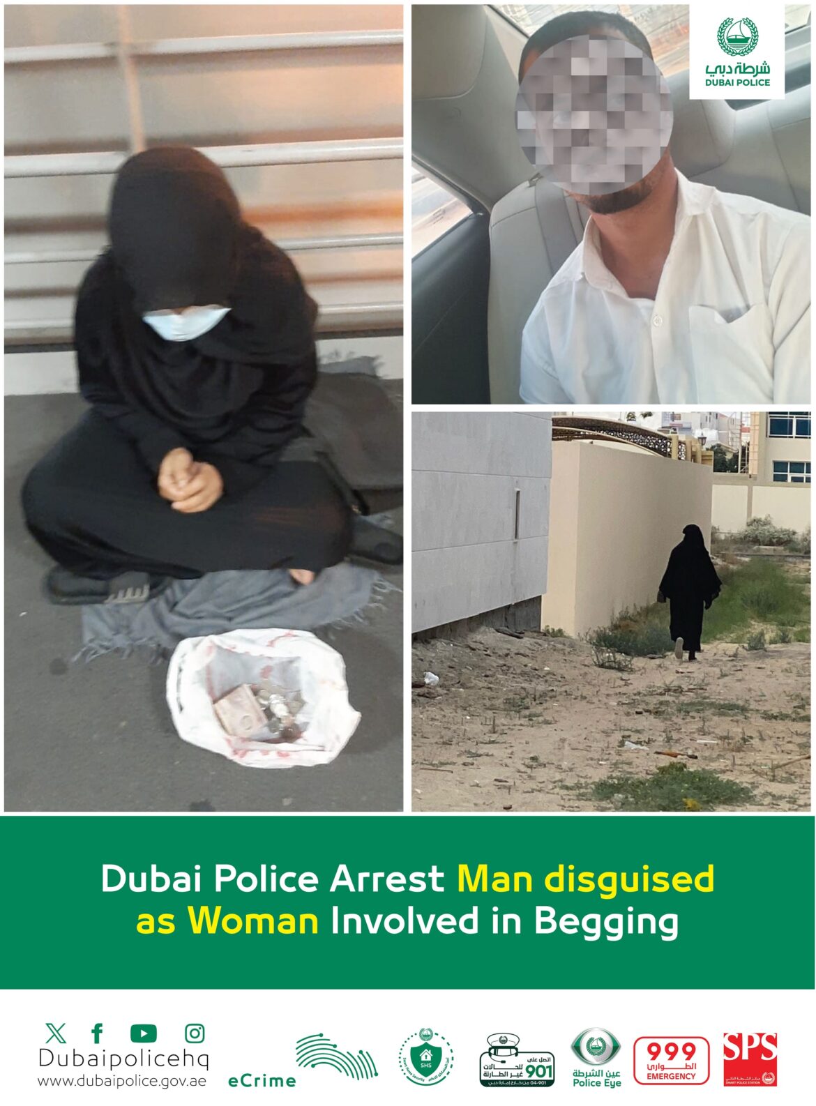 Brigadier Ali Salem Al Shamsi, director of Suspects and Criminal Phenomena Department at the Dubai Police, said “the man was wearing a woman’s clothing because he believed people tend to people sympathise more with begging women than men.”