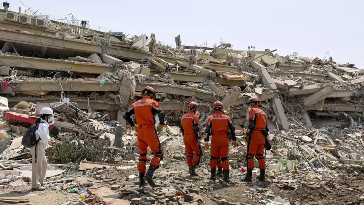 Nearly a week after the quake, searchers in neighbouring Thailand hunting for survivors combed a mountain of debris left after a skyscraper in the capital, Bangkok, collapsed while under construction.