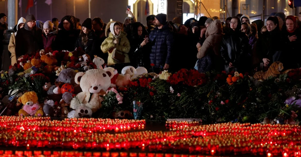 Earlier on Sunday, people laid flowers at Crocus City Hall, the 6,200-seat concert hall outside Moscow where four armed men burst in just before Soviet-era rock group Picnic was to perform its hit “Afraid of Nothing”. The men fired their automatic weapons in short bursts at civilians who fell screaming.