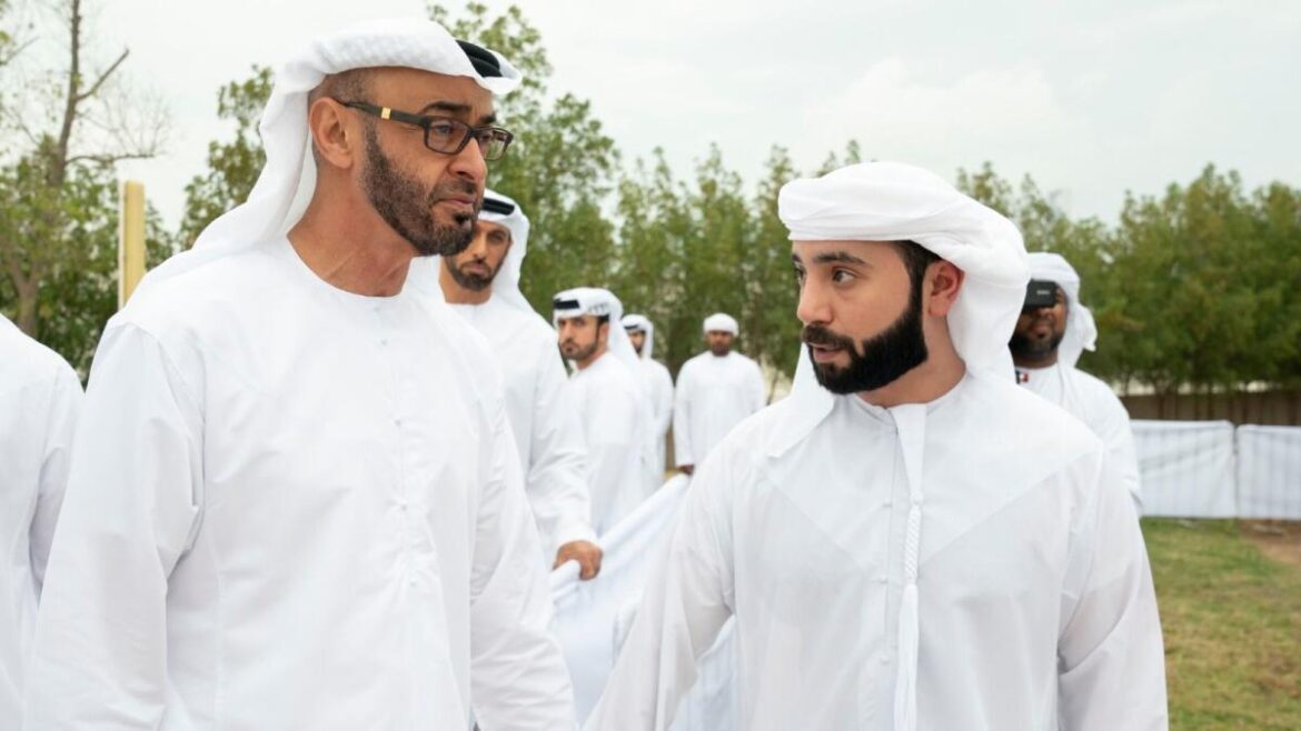 Members of the royal family, top officials, and a crowd of mourners performed funeral prayers for Sheikh Hazza on Thursday afternoon at the Sheikh Sultan bin Zayed First Mosque in Abu Dhabi.