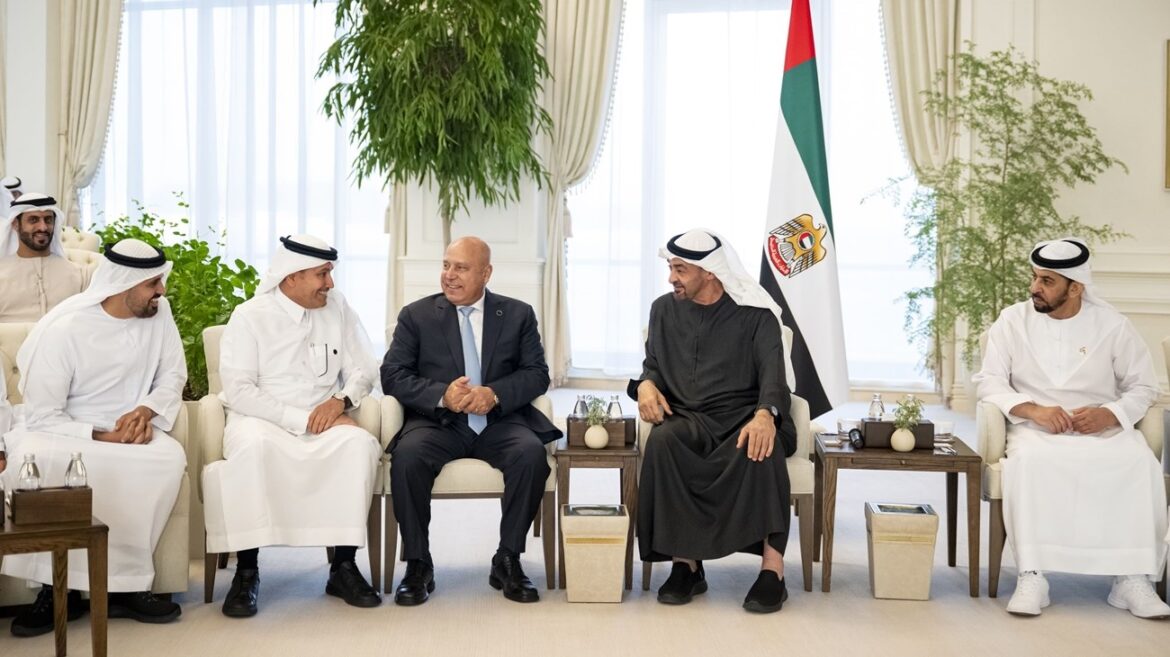 Abu Dhabi:– President His Highness Sheikh Mohamed bin Zayed Al Nahyan today received participants of the Global Rail and Transport Infrastructure Exhibition and Conference, currently underway at ADNEC in Abu Dhabi.