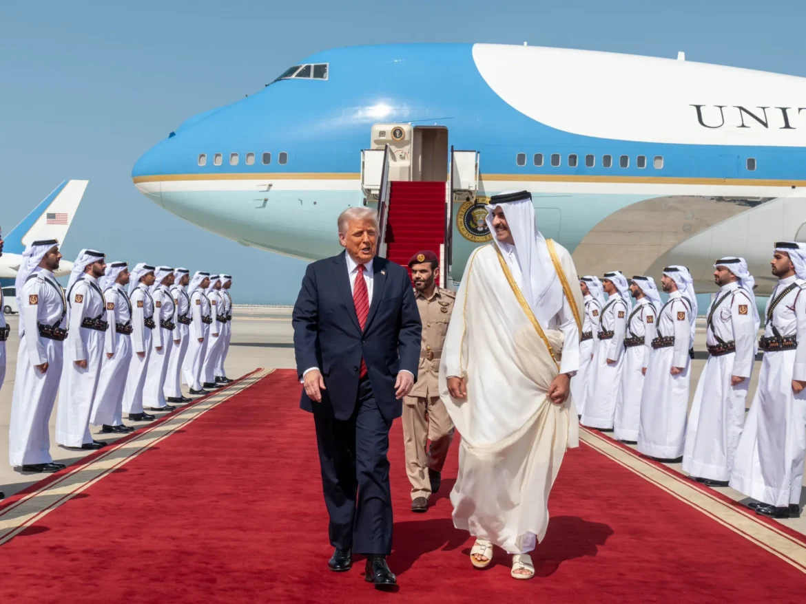 President Trump was greeted with more pomp and ceremony as he arrived in Qatar on the second stop of his Middle East tour after departing Saudi Arabia on Wednesday.