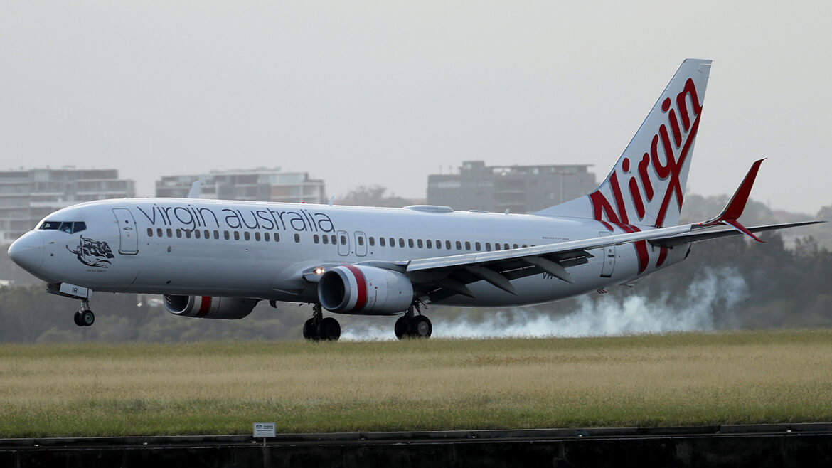 A Virgin Australia Boeing 737 approaches Sydney airport in early June this year. Photograph: David Gray/AFP/Getty Images